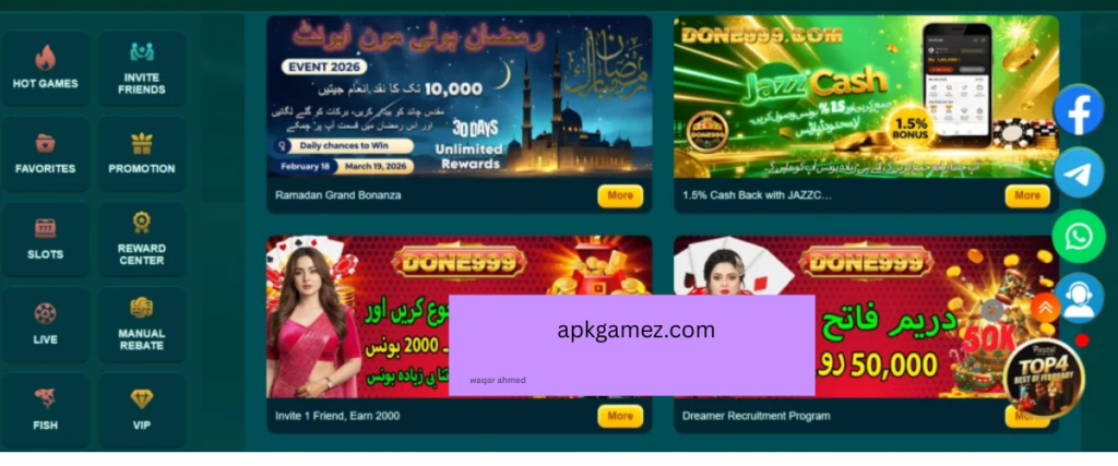 DONE 999 “Game” is a mobile gaming application that lets users access casino-like games, live dealer games, slots, and card games. and the other entertainment and fun categories with potential real money rewards. It is usually distributed as an APK file not always available on the official stores like Google Play, which users install manually on their Android devices. The application’s primary goal is to provide a fun and engaging gaming experience while giving users the opportunity to earn based on the game performance, bonuses, promotions, and referral rewards.